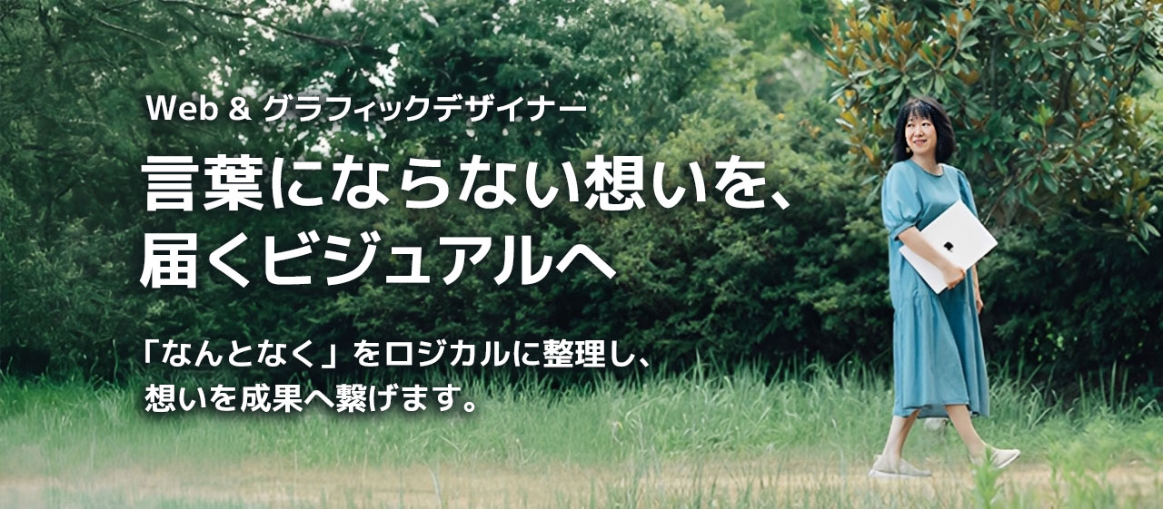現在は、そのスキルをWeb・グラフィックデザインに昇華させ、単に「綺麗なもの」ではなく、「ターゲットに響き、アクションを促す」デザインを追求しています。