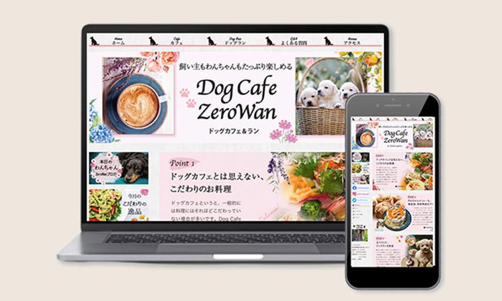 ドッグカフェのホームページを制作いたしました。 30代の女性愛犬家をターゲットにしたドッグカフェのホームページです。 女性の好むピンクを基調とし、可愛い子犬たちの写真などを使いながらも、可愛くなりすぎない大人っぽい雰囲気も出しました。 制作... -